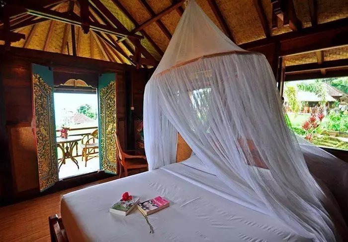 U verblijft in charmante bungalows die ‘lumbung’ worden genoemd, dit waren vroeger rijstschuren. Alle bungalows zijn ingericht in traditionele stijl met mooi gedetailleerd houtsnijwerk. Ze hebben allemaal een slaapkamer met muggennet boven het bed, een badkamer met of douche of bad, en een mooi balkon met een adembenemend uitzicht op de bergen en rijstvelden. Er is gratis wifi, maar geen airconditioning – dat is niet nodig in de gematigde hooglanden.