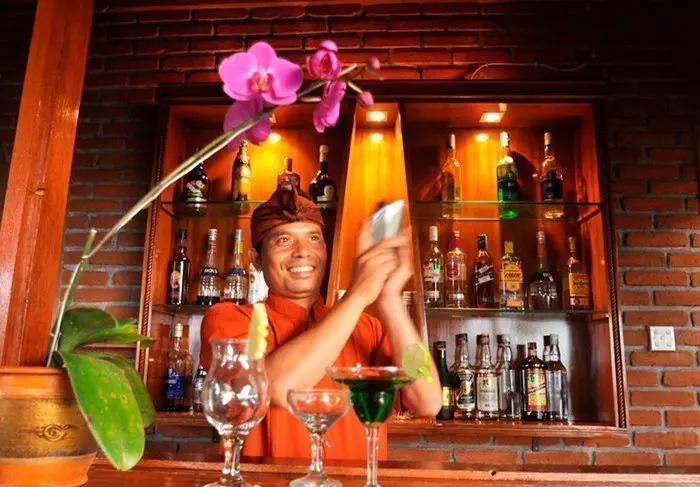 Als u honger krijgt, kunt u genieten van lokale, westerse en vegetarische gerechten in Restaurant Kopi Bali, terwijl de bar van het hotel verkoelende drankjes biedt in de prachtige kleuren van de zonsondergang.