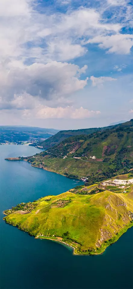 De reis gaat verder naar Parapat, waar je een veerboot neemt naar het eiland Samosir, wat ongeveer 45 minuten duurt. Samosir ligt als een juweel in het midden van het Tobameer, dat 100 km lang, 30 km breed en 505 meter diep is. Met zijn enorme omvang is het Tobameer het grootste kratermeer ter wereld.
