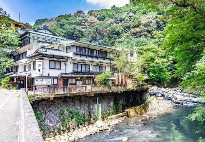 De oude ryokan Tonosawa Ichinoyu Honkan ligt in Hakone, aan de oever van de Hayakawa rivier, en dateert uit 1630.