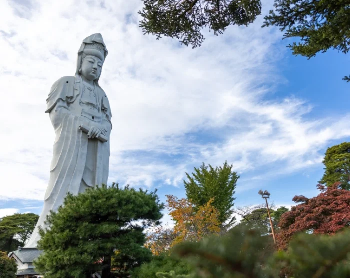 U kunt ook de metro nemen naar een andere bezienswaardigheid van de stad, de Sendai Daikannon. Hier verheft het enorme witte Kannon-beeld zich 100 meter boven de stad en waakt het rustig over de omgeving. Binnen in het beeld loopt u langs meerdere verdiepingen met kleine heiligdommen en boeddhabeelden voordat u het uitkijkplatform bovenin bereikt. De combinatie van historische plekken, lokale markten en moderne herkenningspunten geeft Sendai een uniek karakter, waar cultureel erfgoed en het dagelijks leven in perfecte harmonie samenkomen.