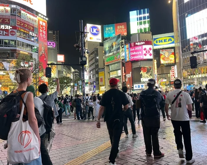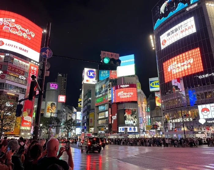 Als u meerdere iconische wijken van Tokio wilt verkennen, liggen er veel handig langs dezelfde treinlijn. Begin bij Yoyogi Park, waar de locals joggen en tot rust komen in de schaduw van hoge bomen. Loop vandaar naar de rustgevende Meiji-schrijn, verscholen in een dicht bos waar grindpaden en de geur van cederhout zorgen voor een vredige ontsnapping aan de drukte van de stad. Ga vervolgens door naar Shibuya, waar u het standbeeld van Hachiko kunt bewonderen en het wereldberoemde Shibuya Crossing kunt oversteken – dat ’s avonds verandert in een betoverende zee van mensen, het mooist te bekijken vanuit een bar hoog boven de stad.