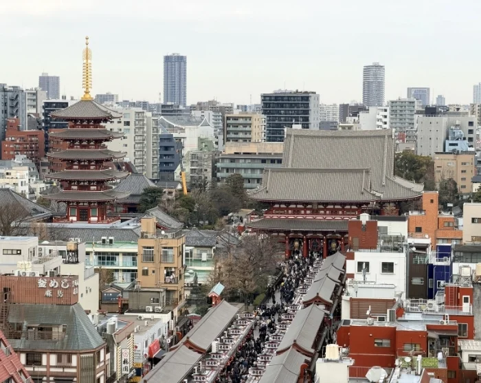 U kunt uw verkenning beginnen in de levendige wijk Asakusa, waar zich Tokio’s oudste en bekendste tempel bevindt: de Senso-ji. Bezoek de tempel via Nakamise-dori, waar de geur van vers bereide snacks zich mengt met de charme van kraampjes vol geluksamuletjes, waaiers en lokale lekkernijen. Slechts een paar straten verder heerst rust in Kappabashi Street, waar kleine winkels Japans porselein en koksmessen zij aan zij verkopen. Kijk omhoog en u ziet de Tokyo Skytree hoog boven de stad uittorenen – een modern herkenningspunt. U kunt de toren van beneden bewonderen of, met een ticket in de hand, omhooggaan voor een adembenemend panoramisch uitzicht over de metropool.