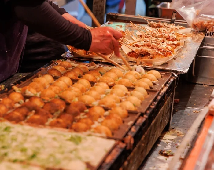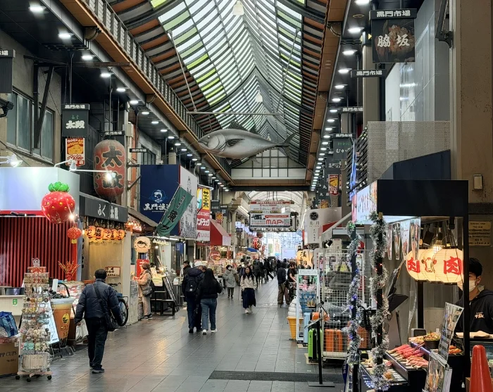 De culinaire wandeling eindigt op de Kuromon-markt, een levendige foodmarkt waar de geur van vers gegrilde vis, dampende soepen en prachtig uitgestalde pastelkleurenfruit uw zintuigen prikkelt. Hier krijgt u de kans om knapperige takoyaki met stukjes octopus te proeven, voordat u op eigen gelegenheid verdergaat of samen met uw gids terugkeert naar het hotel.