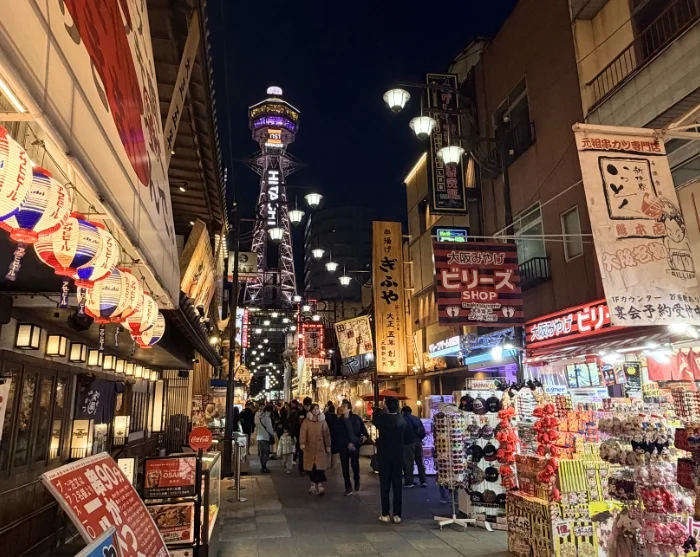 De reis begint in de charmante wijk Shinsekai, die vóór de Tweede Wereldoorlog werd gebouwd en “De Nieuwe Wereld” werd genoemd. De architectuur en de sfeer van het gebied weerspiegelen nog altijd de fascinatie van die tijd voor zowel Parijs als New York, en de straten ademen een nostalgische charme van vervlogen dagen. Hier kunt u genieten van de goudbruine kushikatsu-spiezen – zowel met vlees als met groenten – een van de populairste snacks van de stad.