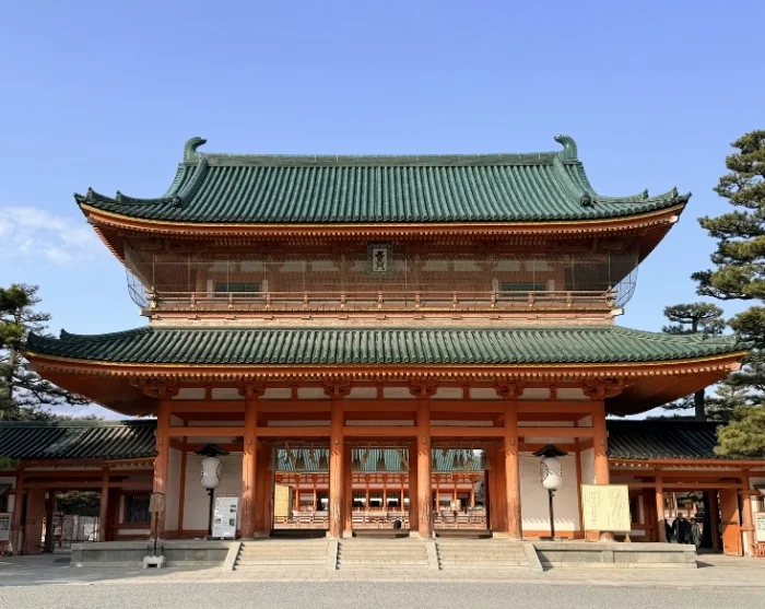 Vervolgens kunt u met de bus naar het noordoosten reizen, naar een van de bekendste bezienswaardigheden van Kyoto: de Ginkaku-ji-tempel, ook wel het Zilveren Paviljoen genoemd. Bewonder de ingetogen elegantie en poëtische charme van de tempel, en wandel daarna verder over het Filosofenpad – een schilderachtig pad langs een smal kanaal omzoomd met kersenbomen. Dit pad verbindt meerdere kleine tempels en eindigt bij Nanzen-ji, een van de belangrijkste zen-tempels van Kyoto en zeker een bezoek waard. Vanaf hier kunt u verdergaan naar het Heian Jingū-heiligdom, beroemd om zijn grote torii-poort en serene tuin.