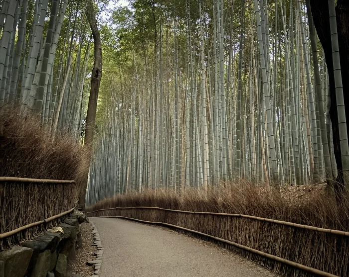 Wilt u een andere kant van Kyoto ontdekken? Neem dan het openbaar vervoer naar het westen, richting Arashiyama, om de Tenryu-ji-tempel te bezoeken. Deze tempel staat bekend om zijn klassieke tuin en het uitzicht op de weelderige, groene heuvels. Wandel ook zeker door het beroemde bamboebos van Arashiyama, waar hoge bamboestengels rustige, met licht gevulde groene paden vormen. Daarnaast is het de moeite waard om de charmante wijk Saga Toriimoto te verkennen, die bekendstaat om haar goed bewaarde huizen en sfeervolle, uitnodigende straatjes.