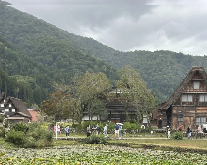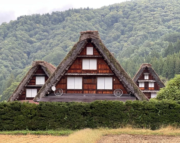 Bij aankomst in Shirakawa-go is het moeilijk niet betoverd te raken door de bijzondere sfeer van het dorp. Verspreid over het rustige landschap liggen traditionele boerderijen met steile, rieten daken, gebouwd om de zware sneeuwval in de winter te weerstaan. Deze huizen staan bekend als gassho-zukuri, wat “handen in gebed” betekent, omdat de karakteristieke dakvorm lijkt op gevouwen handen.