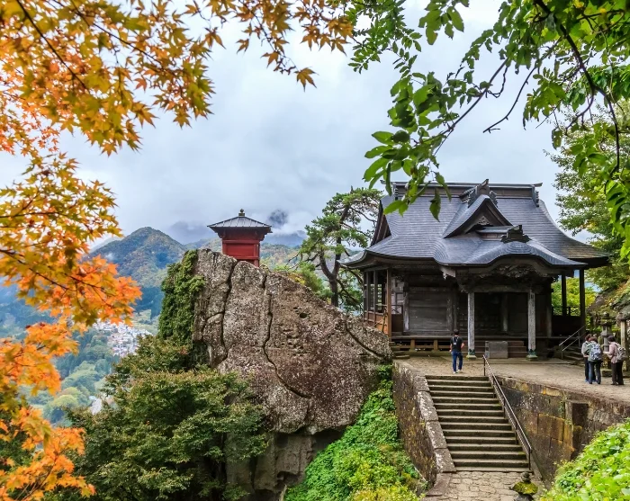 De Risshaku-ji-tempel, beter bekend als Yamadera, betekent letterlijk “bergtempel” in het Japans en werd vereeuwigd door de beroemde haikudichter Matsuo Basho. In de jaren 1600 schreef hij hier een van zijn bekendste gedichten, waardoor de tempel een poëtisch en spiritueel symbool werd voor veel Japanners. De tempel is een geliefde bestemming onder de lokale bevolking, maar geldt nog steeds als een verborgen parel voor internationale reizigers – terwijl de wandeling naar de top slechts 30 tot 40 minuten duurt.