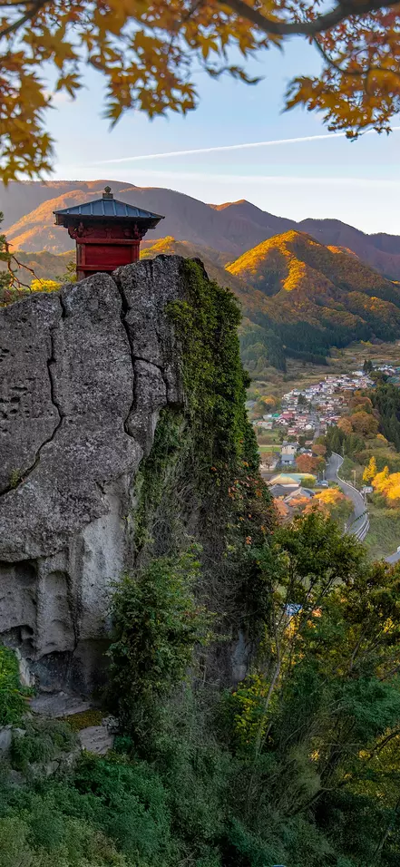 Vanaf het station loopt u heuvelopwaarts richting de Yamadera-tempel, die tegen de berghelling lijkt te zijn geplakt. U volgt een pad met honderden stenen treden, die in de loop der eeuwen glad zijn uitgesleten door monniken en pelgrims. De trappen slingeren door een sprookjesachtig landschap van torenhoge ceders en een haast tastbare rust. Onderweg komt u langs kleine, met mos begroeide heiligdommen en uitzichtpunten waar u even kunt uitrusten en genieten van het adembenemende uitzicht.