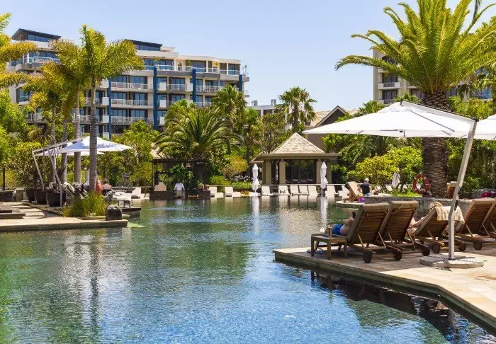 De spa en het zwembad liggen elk op een eigen eiland in de haven en zijn bijna geheel omgeven door een tropische tuin – midden in de stad. In de lounge kunt u van een cocktail genieten met uitzicht op de Tafelberg, terwijl u wacht op uw tafel van het enige restaurant van Nobu in Afrika – dat is zo populair dat u op tijd een tafel moet reserveren.