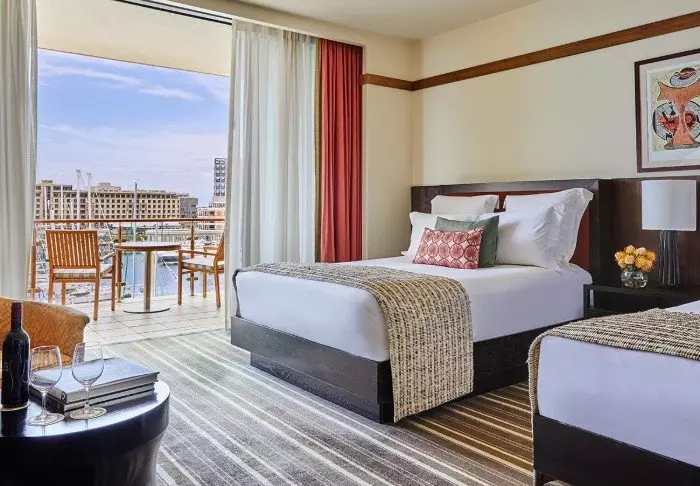 De kamers in dit hotel zijn de grootste van de stad en ze hebben allemaal eigen balkon, Nespresso-machine, flatscreen tv, bad en uitzicht op het bruisende gebeuren in de haven.