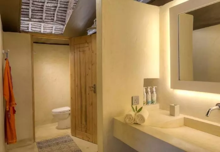 De tenten zijn gebouwd op cementplatforms, iets verhoogd van de grond, met canvas wanden en daken. De canvasdaken worden beschermd door een karakteristiek Afrikaans rieten dak, dat schaduw biedt tegen zowel zon als regen.