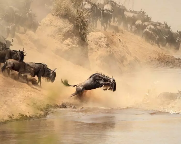 Van juli tot oktober kunt u de 1.200 km lange trek zien van meer dan een miljoen gnoes, honderdduizenden zebra’s en een heleboel Thompsongazellen, die op zoek zijn naar op zoek naar water en vers gras. Tijdens deze trek – bij het oversteken van de rivier de Mara – valt een groot aantal dieren ten prooi aan enorm grote nijlkrokodillen.