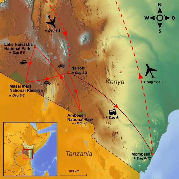 Vandaag vertrekt u naar Kenia met tussenlanding(en) onderweg.