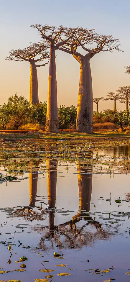 Op de weg terug richting Morondava passeert u opnieuw de indrukwekkende baobabbomen – met een beetje geluk wordt u misschien zelfs getrakteerd op nog een adembenemende zonsondergang.