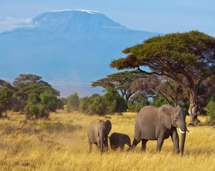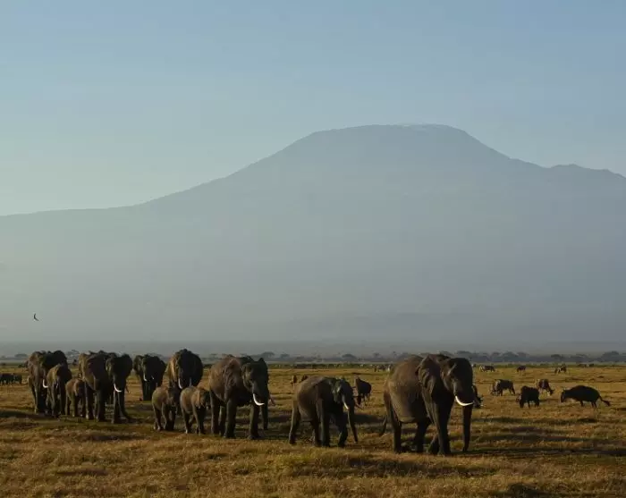 Bijna overal waar je komt heb je uitzicht op de Kilimanjaro, die in Tanzania ligt, maar waarschijnlijk vaker van de Keniaanse kant wordt gefotografeerd. In Amboseli kun je het geluk hebben om de perfecte foto te maken van de olifanten, die over het vlakke landschap slenteren als de zon ondergaat voordat ze de bossen aan de voet van de Kilimanjaro ingaan, waar ze de nacht doorbrengen.