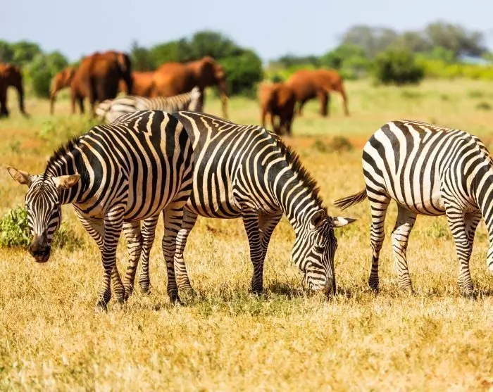 Het landschap in Tsavo East is vlak, waardoor het gemakkelijk is om de dieren te zien.