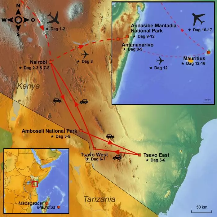 In Kenia maak je kennis met neushoorns, olifanten en leeuwen. In Madagaskar wandel je door het regenwoud op zoek naar maki’s en kameleons, voordat je je rondreis afsluit met een strandvakantie op het exotische Mauritius.