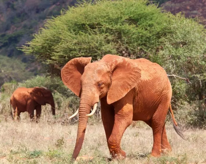 In Tsavo East heeft de grond een helderrode kleur, waardoor de dieren een opvallend roodachtig uiterlijk krijgen. Het maakt indruk de eerste keer dat je een roodachtige olifant ziet! Het landschap is vlak, waardoor het gemakkelijk is om de dieren te zien.