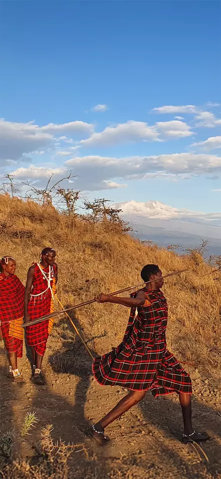 Het programma van de dag hangt enigszins af van het tijdstip waarop je aankomt. Misschien is er wat tijd om te ontspannen – misschien kom je net op tijd aan om het speerwerpen te zien. In de oudheid doodden de Maasai leeuwen met speren als hun vee bedreigd werd. Vandaag de dag is een boomstronk echter het doel, want zoals ze zeggen: “de bezoekers komen om de leeuwen te zien, dus we moeten er alles aan doen om ze te beschermen”! De Maasai leven op vele manieren in harmonie met de natuur omdat ze er zo afhankelijk van zijn.
