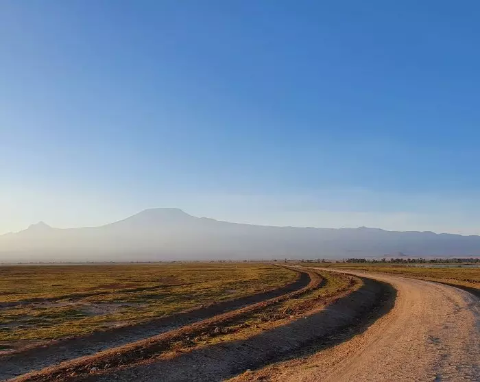 Je hebt uitzicht op de Kilimanjaro gedurende een groot deel van de rit van Tsavo East naar Tsavo West, en het is leuk om te zien hoe anders de berg er vanaf deze kant uitziet dan vanaf Amboseli. Let er bijvoorbeeld op hoe de Mawenzi Peak bijna hoger lijkt dan Kibo, waar de Uhuru Peak (het hoogste punt van de Kilimanjaro) zich bevindt. Dat is een optische illusie. De Uhuru Peak is het hoogste punt.