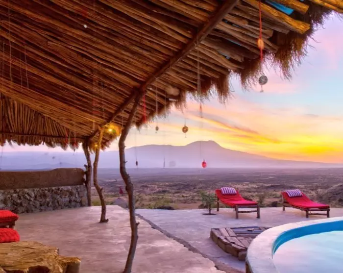 Bij zonsopgang kun je de Maasai misschien horen rondlopen buiten je hut, en er zal waarschijnlijk ook een hele zwerm vogels zijn die aan hun ochtendgezang beginnen. Zet de deuren open en blijf in bed liggen terwijl je de zon ziet opkomen boven de Kilimanjaro.