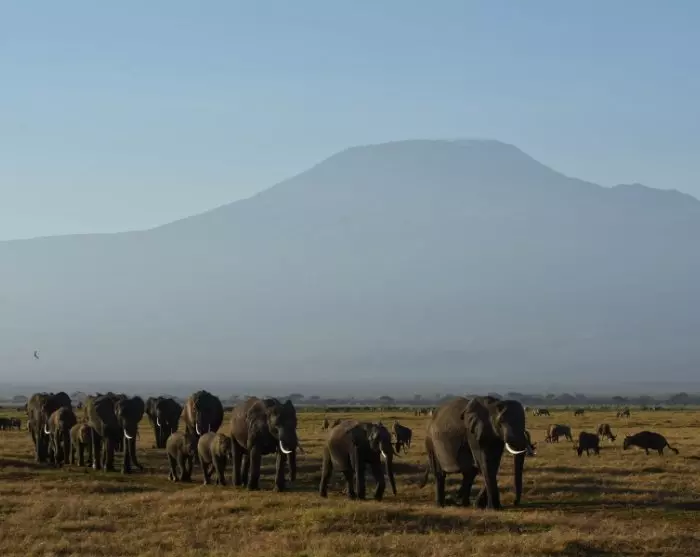 Je kunt je verheugen op een ontmoeting met de olifanten, waar het park beroemd om is. De kuddes zijn groot en veel olifanten hebben enorme slagtanden. Een van de meest bekende beelden van Amboseli is van de zonsondergang, wanneer de olifanten over het vlakke landschap lopen om de bossen aan de voet van de Kilimanjaro binnen te gaan, waar ze de nacht doorbrengen. Dit is het moment dat je het geluk kunt hebben om de perfecte foto van de olifanten te maken met de Kilimanjaro op de achtergrond.