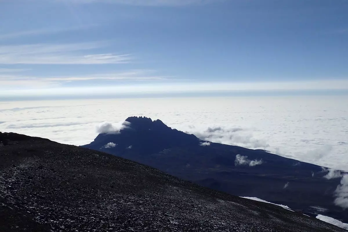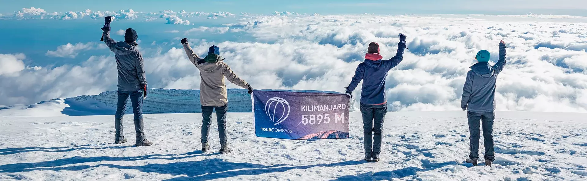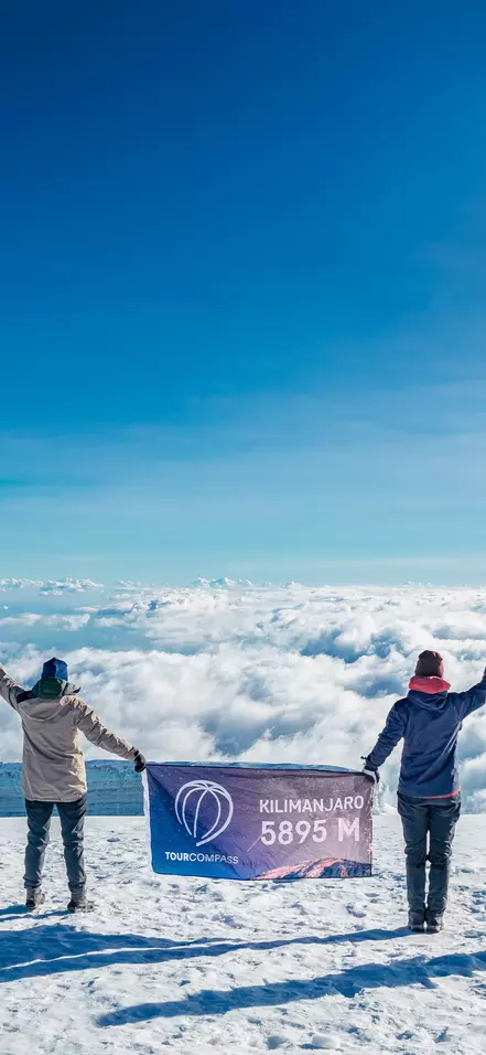 Rond middernacht staat u op en krijgt u een snack geserveerd voordat u in het donker begint aan de laatste klim naar de top. Het moeilijke terrein tijdens de ca. 6 uur naar Stella Point is voor de meeste mensen de grootste uitdaging. Het doel is Stella Point kort na zonsopgang te bereiken, zodat u hier kunt genieten van dit roodgloeiende schouwspel. We pauzeren niet lang, omdat het anders bijna onmogelijk wordt om weer op gang te komen als gevolg van de kou en de vermoeidheid. U loopt verder langs de kraterrand, met aan het eind een gelijkmatige stijging. Afhankelijk van het seizoen ligt er mogelijk sneeuw op het laatste traject voor de eindbestemming: de Uhuru Peak, de top van de Kilimanjaro en de top van Afrika. Als u de top heeft bereikt op 5.895 m hoogte, kunt u uzelf een schouderklopje geven, genieten van het fantastische uitzicht en ter herinnering een selfie maken bij het Uhuru Peak-bord.