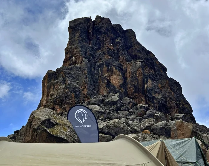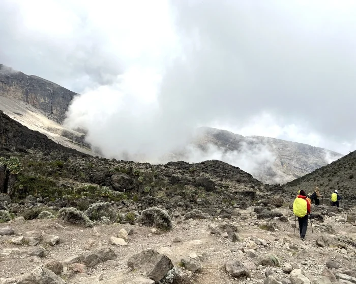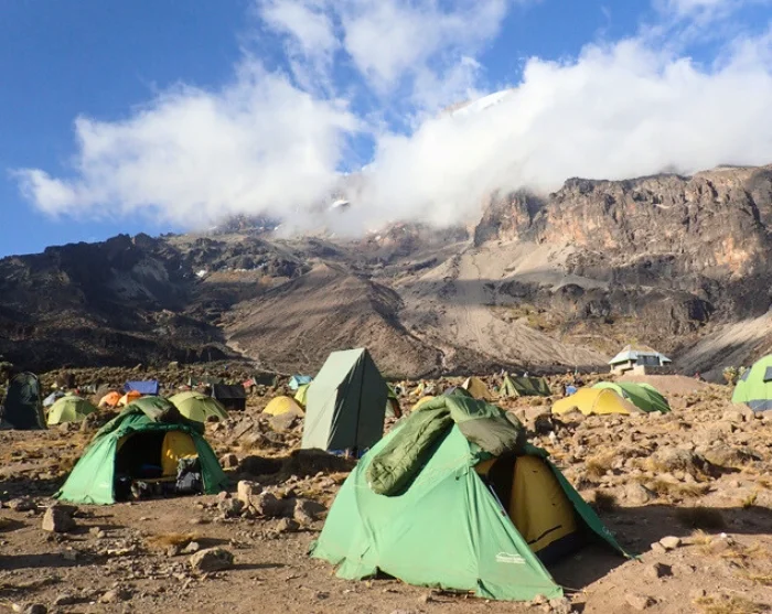 Vandaag loopt u in oostelijke richting. Hoe hoger u komt, hoe droger, kaler en rotsachtiger het landschap wordt. Onderweg wordt u beloond met fraaie uitzichten op Kibo en Mt. Meru, die uit de witte wolken achter u omhoogsteken. Na een paar uur lopen bereikt u de beroemde Lava Tower, die ontstaan is door de vroegere vulkanische activiteit van de Kilimanjaro.