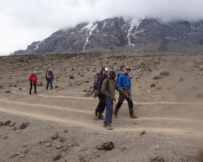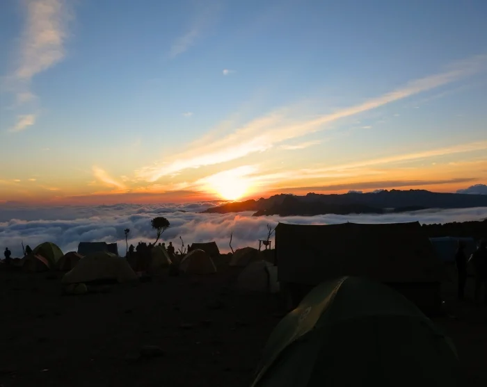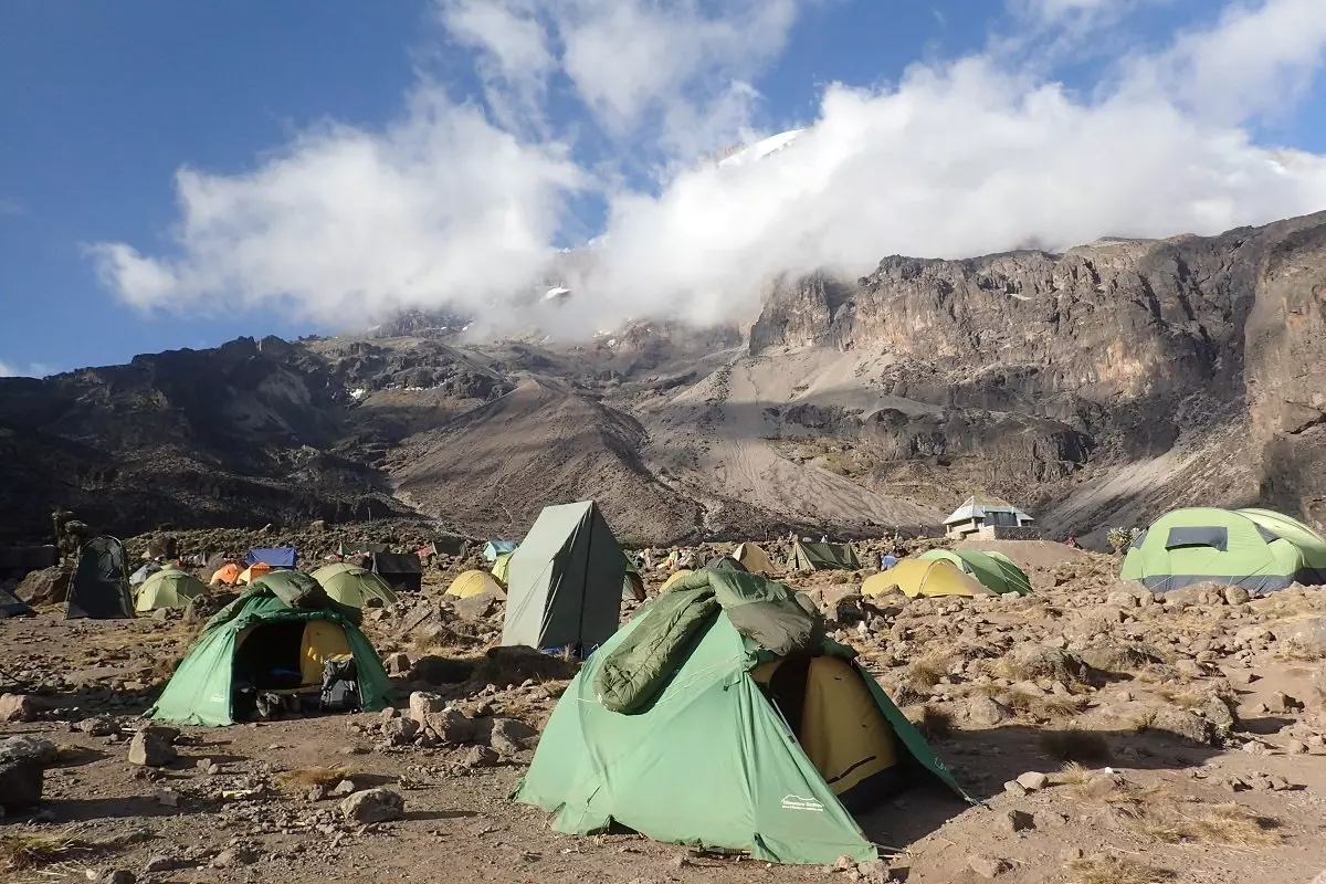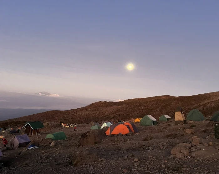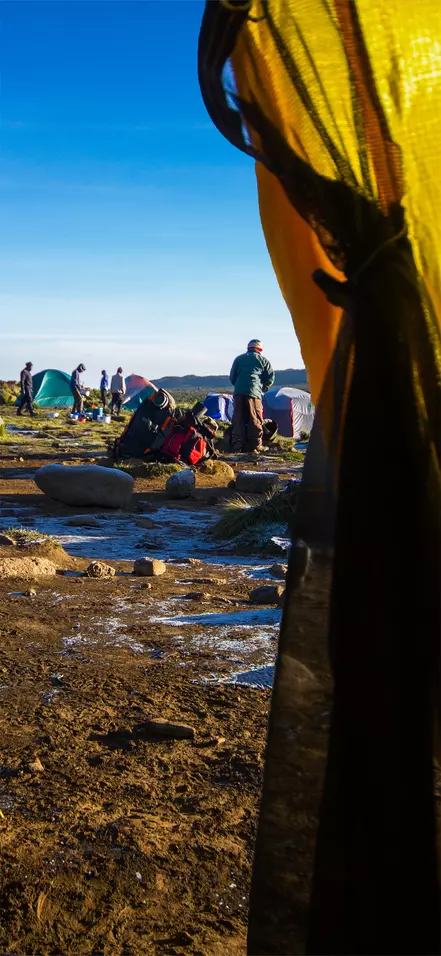 De tocht voert naar beneden door de Karanga Valley en valt samen met de Mweka-route, die u de rest van de weg naar de top van de Kilimanjaro zult volgen. Na een uur lopen bereiken we het Barafu Camp. Het Barafu Camp ligt op een onbeschutte bergrug. De bodem is rotsachtig en het waait er vaak hard. Zorg ervoor dat u het terrein rond het kamp goed heeft verkend voordat het donker wordt. Dan bent u goed voorbereid voor de klim naar de top, die kort na middernacht begint.