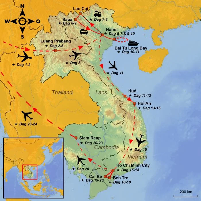 In Vietnam wacht u een overvloed aan natuurschoon en bruisende steden. Uw Vietnamese avontuur begint in Hanoi, waar straateten, Franse koloniale architectuur en iconische meren samen een unieke sfeer scheppen. Vervolgens reist u naar het bergachtige Sapa en verder door het rustgevende kalkstenen landschap van Bai Tu Long baai. U ontdekt bovendien de oude keizerlijke stad Hué, het charmante Hoi An en de levendige metropool Ho Chi Minhstad, waar u een bijzonder inkijkje krijgt in het dagelijkse leven te midden van het groene doolhof van de Mekongdelta.