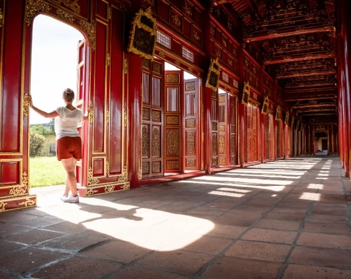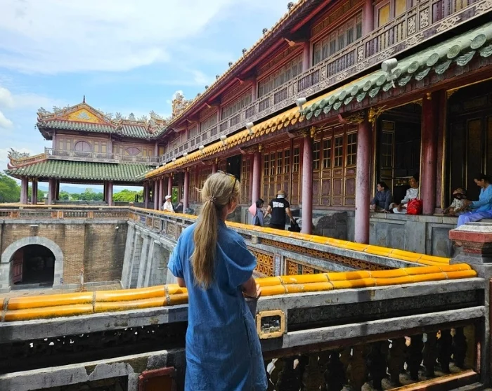 U stapt uit bij de Ha Long International Port, waar uw gids en chauffeur klaarstaan om u naar Noi Bai luchthaven in Hanoi te brengen. Van hieruit vliegt u naar Hué in centraal Vietnam – een vlucht van ongeveer 1 uur en 15 minuten. Uw gids wacht buiten de aankomsthal, voorbij de uitgang, gekleed in TourCompass-uniform en met een TourCompass-bord voor makkelijke herkenning. Vervolgens wordt u naar uw hotel in het hart van de stad gebracht.
