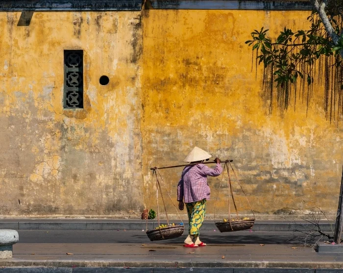 Wanneer u de rivier achter u laat, komt u terecht in een wirwar van sfeervolle straatjes. U wordt hier verwelkomd door een levendige mix van Japanse houten huizen, Chinese ontmoetingshallen, elegante Franse koloniale panden en de iconische koopmanshuizen. Kleurrijke lantaarns hangen als slingers boven de straten en zorgen—vooral als de avond valt—voor een betoverend schijnsel. Winkeltjes, streetfoodkraampjes, knusse cafés en charmante kleine restaurants liggen als parels aaneengeregen en nodigen uit om op uw gemak te ontdekken en te genieten.