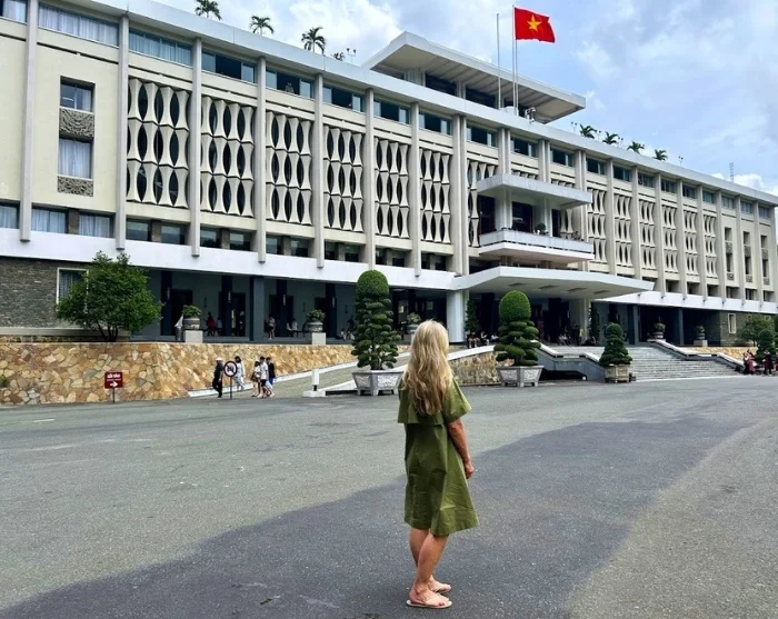 Als u met uw gezicht naar de kerk staat, ziet u achter u een grijs gebouw. Sommigen zullen het herkennen als de “Pittman Apartments” aan Gia Long Street 22 – een plek die wereldwijd bekend werd door een foto, genomen op 29 april 1975 door de Nederlandse fotograaf Hubert van Es, tijdens de val van Saigon. Hier landde een helikopter op het dak, wat een scène opleverde die velen ten onrechte associeerden met de Amerikaanse ambassade. Uw gids vertelt u het aangrijpende verhaal van de evacuatie en onthult welke verborgen rol dit gebouw speelde in de laatste uren van de oorlog.
