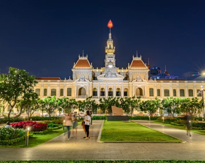 Maak bij schemering een wandeling over de Nguyen Hue-promenade, omgeven door bloemen, fonteinen en indrukwekkende architectuur. Hier beleeft u het echte stadsleven: inwoners komen samen met straatartiesten, dansers en jonge gezinnen, wat zorgt voor een charmante en levendige sfeer. Vooral rond het verlichte stadhuis bereikt de ontspannen, bruisende ambiance haar hoogtepunt.