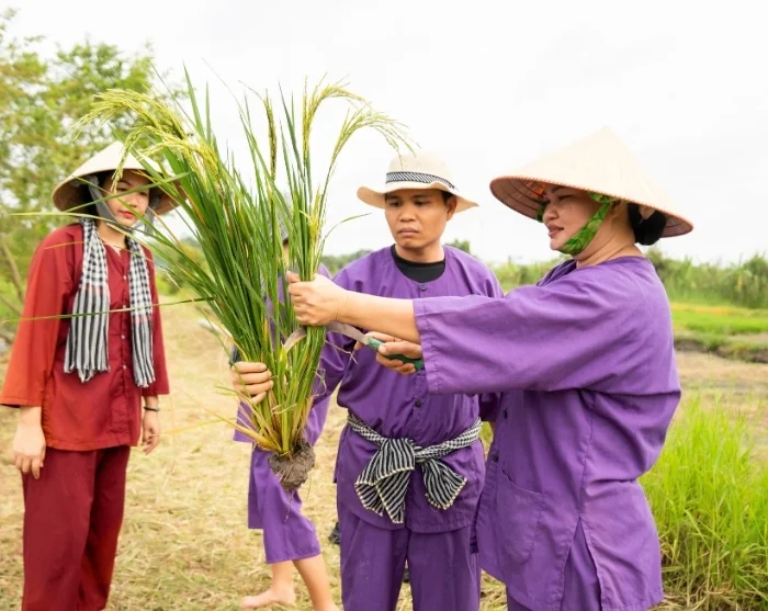 Daarna bezoekt u ons duurzaamheidsproject in Vinh Long, opgezet door onze lokale partner. U maakt een ontspannen wandeling door het dorp, terwijl uw gids meer vertelt over deze bijzondere onderneming. U krijgt daarnaast de kans om het traditionele plattelandsleven met eigen handen te ervaren door samen met lokale boeren de rijstvelden in te gaan – afhankelijk van het seizoen helpt u met het planten van jonge scheuten of juist met de oogst. Deze bijzondere, interactieve beleving biedt een uniek inkijkje in het dagelijks leven op het Vietnamese platteland en de inzet voor duurzame landbouw. Door deel te nemen aan deze reis draagt u bovendien direct bij aan het welzijn van families in Vinh Long, want een deel van de reissom gaat rechtstreeks naar dit project. Meer informatie hierover vindt u hier.