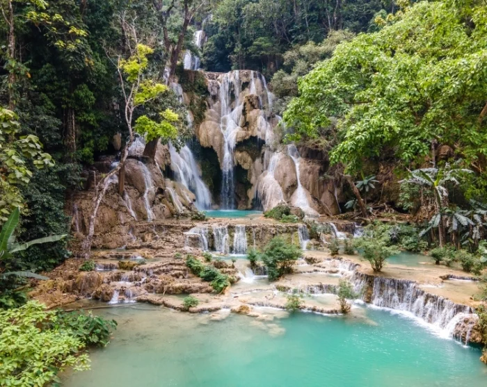 Na een heerlijke lunch reist u 30 km zuidwaarts naar de Kuang Si-waterval. Deze indrukwekkende waterval ligt verscholen in het weelderige, tropische regenwoud en stort via drie niveaus over de steile heuvel naar beneden. De hoogste val is maar liefst 60 meter en bij het laagste gedeelte kunt u zelfs een verfrissende duik nemen in de kalme, turquoise poelen.
