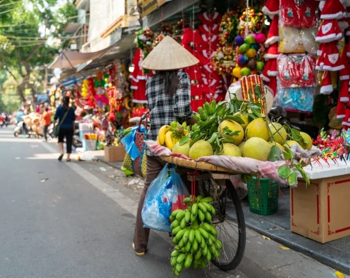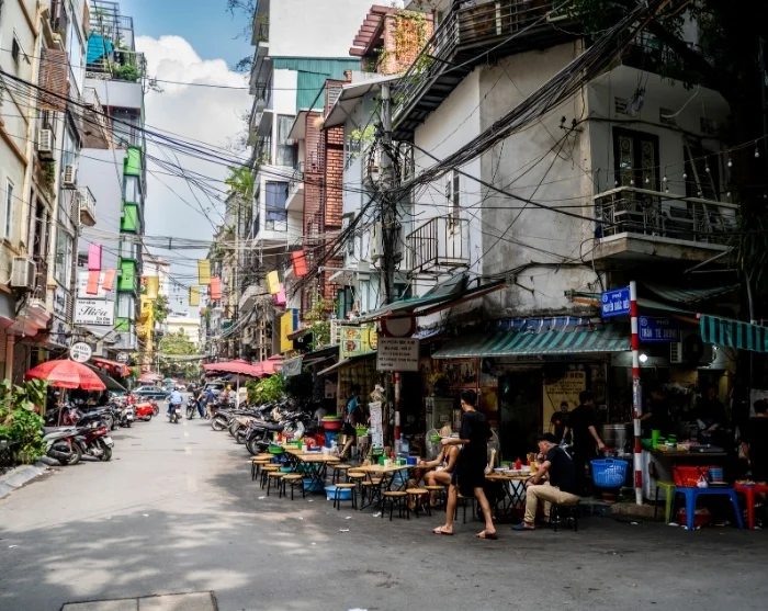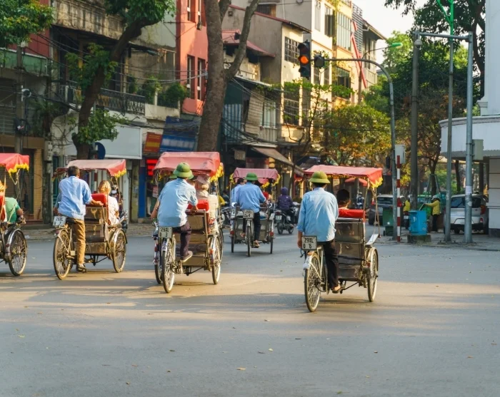 De reis gaat vervolgens verder per klassieke fietstaxi – hier bekend als cyclo – waarmee u door het doolhof van smalle straatjes en het bruisende leven van het oude centrum rijdt. Deze historische wijk staat bekend om zijn 36 straten, die oorspronkelijk elk vernoemd waren naar de waren die er verkocht werden: bamboe, zijde, papier, tin – en nog veel meer. Veel van deze straatnamen bestaan nog steeds, waardoor de buurt een authentieke sfeer ademt. Hanoianen doen hier hun boodschappen, kletsen met buren en serveren stomende kommen pho vanuit levendige straatkeukens.