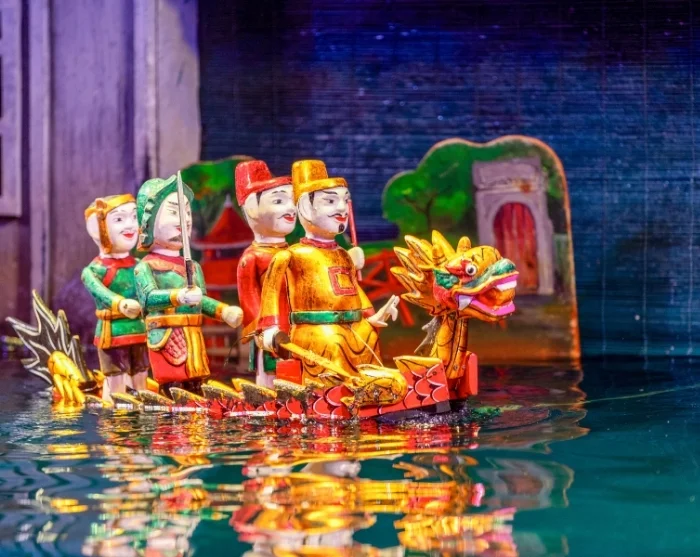 De dag vol bezienswaardigheden wordt afgesloten met een voorstelling in het waterpoppen-theater, een eeuwenoude Vietnamese traditie waarbij prachtig uitgesneden poppen dansen over het wateroppervlak, begeleid door livemuziek en klassieke vertelkunst.