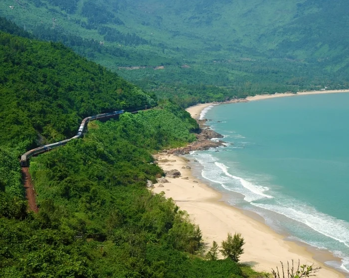 Word wakker met een schitterend uitzicht terwijl de trein zich langs de kustlijn en door de schilderachtige Van Hai-pas slingert.