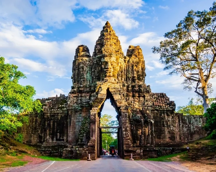U start bij de Zuidelijke Poort van Angkor Thom, waar beelden van goede en kwade goden de toegang bewaken. Hierna bezoekt u de iconische Bayon-tempel, beroemd om de honderden glimlachende gezichten op de hoge torens. Vooral de ingewikkelde reliëfs zijn indrukwekkend: ze tonen het dagelijkse Khmer-leven én de grote veldslagen tussen de Khmers en de oude Thai.