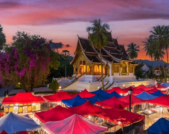 Uw avontuur begint in de oude koningsstad Luang Prabang, Laos, die bekendstaat om zijn ontspannen sfeer, gouden tempels en het adembenemende panoramische uitzicht vanaf de top van de Phousi-berg. U bezoekt ook het Koninklijk Paleis en kunt een verfrissende duik nemen bij de prachtige Kuang Si-waterval.