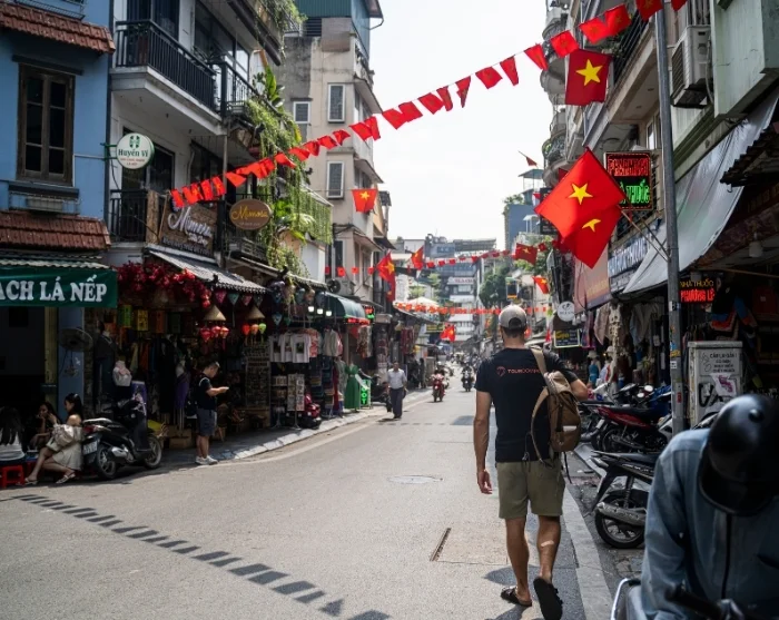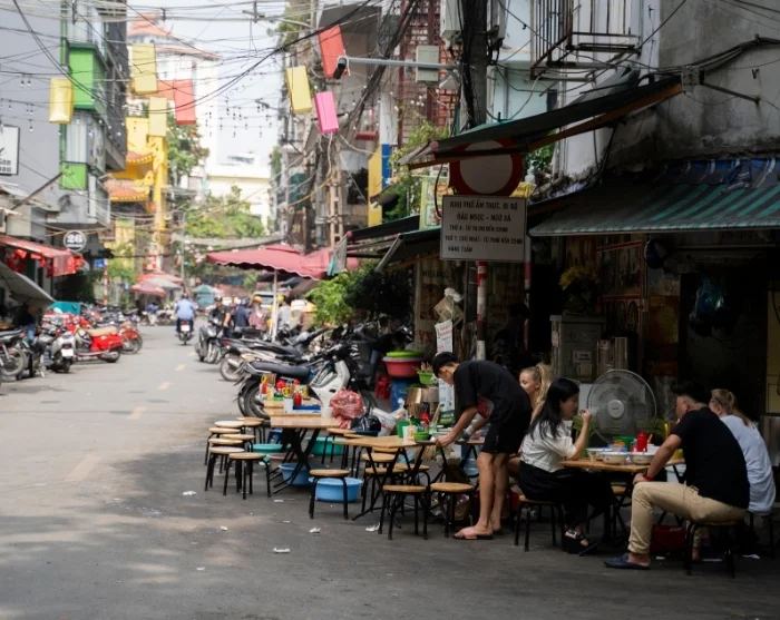 Het avontuur gaat verder met een ritje in een cyclo – een fietsriksja – waarbij u zich een weg baant door het doolhof van smalle straatjes en levendige, drukke handel in de oude wijk. Deze historische wijk staat bekend om haar 36 straten, die oorspronkelijk zijn vernoemd naar de producten die hier ooit werden verhandeld: bamboe, zijde, papier en tin. Veel van deze oude straatnamen bestaan nog steeds en de buurt bruist van lokale charme. Hanoianen onderhandelen er, maken een praatje en serveren dampende kommen pho uit drukbezochte straatkeukens.