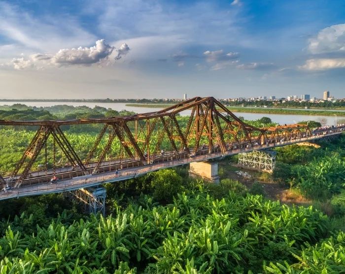 Na uw enerverende rit in de cyclo bezoekt u de historische Long Bien-brug – een iconisch bouwwerk uit het Franse koloniale tijdperk dat begin 1900 is gebouwd. Deze bijzondere ijzeren brug overspant de Rode Rivier en werd tijdens de Vietnamoorlog zwaar beschadigd, maar staat vandaag de dag nog altijd symbool voor de veerkracht van Hanoi. De brug is uitsluitend bestemd voor treinen, fietsers en voetgangers, wat zorgt voor een unieke sfeer. U treft hier mogelijk lokale inwoners die naar hun werk fietsen of vers fruit verkopen langs het spoor, en u kunt genieten van het uitzicht op kleine, groene riviereilanden met akkers die tussen de stad verscholen liggen – een geliefd onderwerp voor fotografen en reizigers die de ware ziel van Hanoi willen vastleggen.
