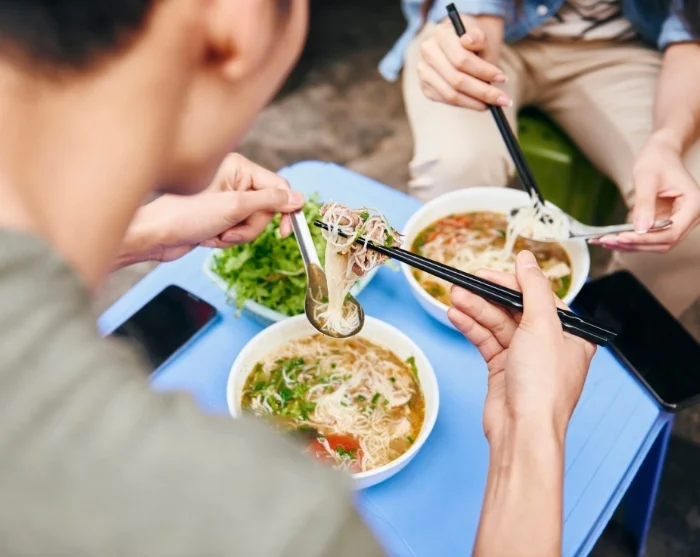 Voor de lunch dompelt u zich onder in Hanoi’s beroemde streetfoodcultuur. Proef een dampende kom pho, geniet van de geurige bun cha van de grill, of pak een knapperige banh mi voor onderweg.