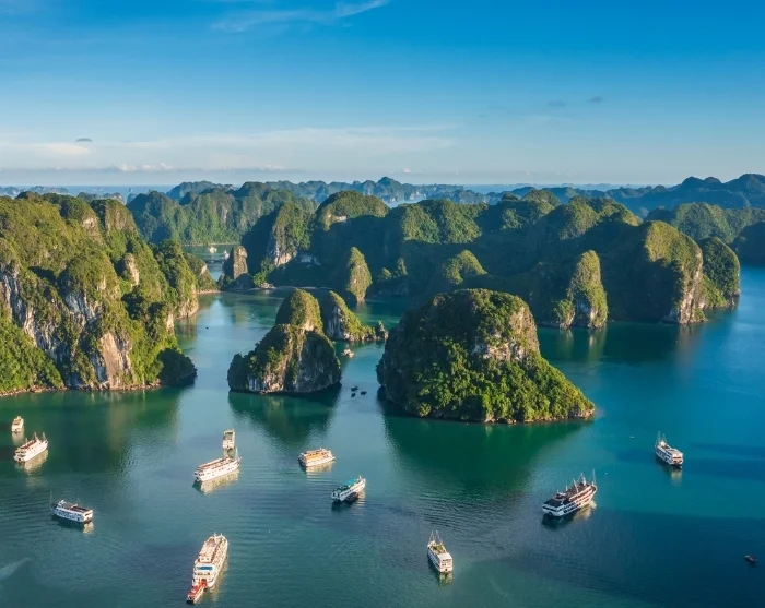 Vandaag laat u het drukke stadsleven achter u en reist u af naar een van de meest iconische natuurwonderen van Vietnam – de legendarische Ha Long baai. De rit duurt ongeveer 4 uur, met onderweg een korte stop zodat u de benen kunt strekken en iets te drinken kunt pakken.