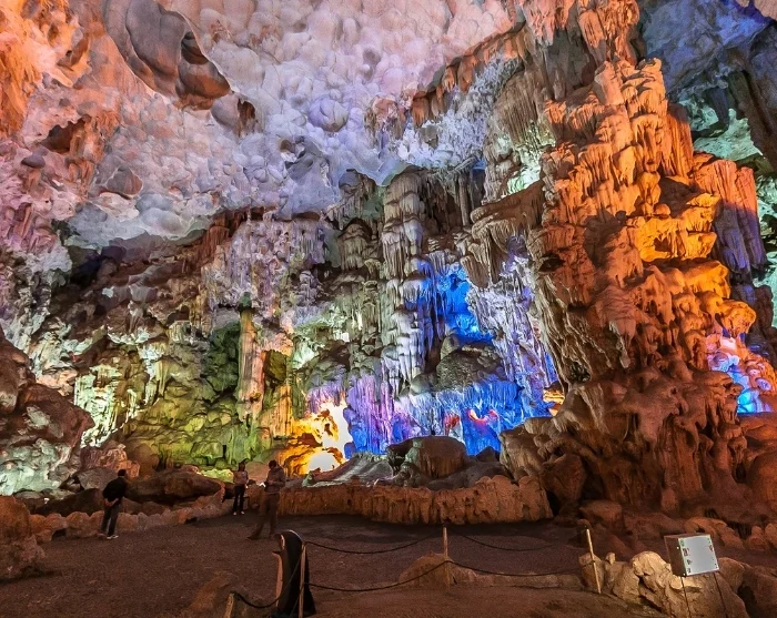 De reis gaat verder naar Sung Sot Cave, de grootste en meest indrukwekkende kalksteengrot van Ha Long baai. Binnen wacht u een sprookjesachtige wereld vol stalactieten en stalagmieten die in miljoenen jaren zijn gevormd. Wij raden stevige, gesloten schoenen aan, zeker bij nat weer.
