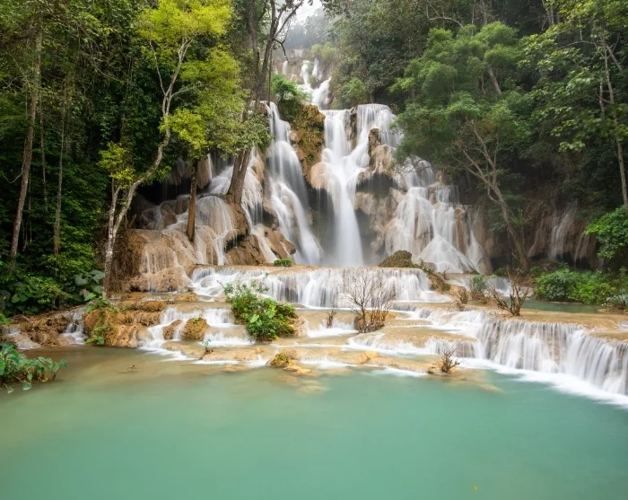 Na een heerlijke lunch rijdt u 30 kilometer naar het zuiden om de Kuang Si-waterval te bezoeken. Midden in de tropische jungle stroomt het water over een steile heuvel in drie etages naar beneden. De hoogste val is maar liefst 60 meter en bij het onderste bassin kunt u een verfrissende duik nemen in het kalme, turquoiseblauwe water.