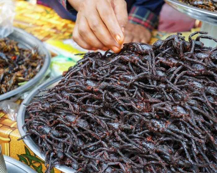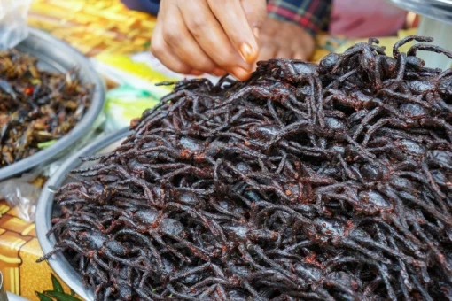 Vanuit Siem Reap reist u verder zuidwaarts richting de hoofdstad door een prachtig landschap van rijstvelden en kleine dorpjes. De route volgt deels de oever van het Tonlé Sap-meer en u stopt in Skuon, een stad die bekendstaat om zijn kenmerkende Cambodjaanse specialiteiten.